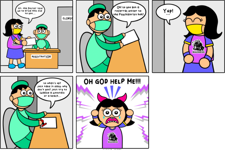 Receptionist: Oh! So you got a referral letter to the psychiatrist huh?
